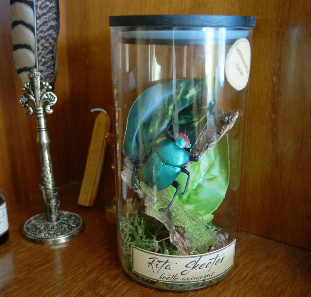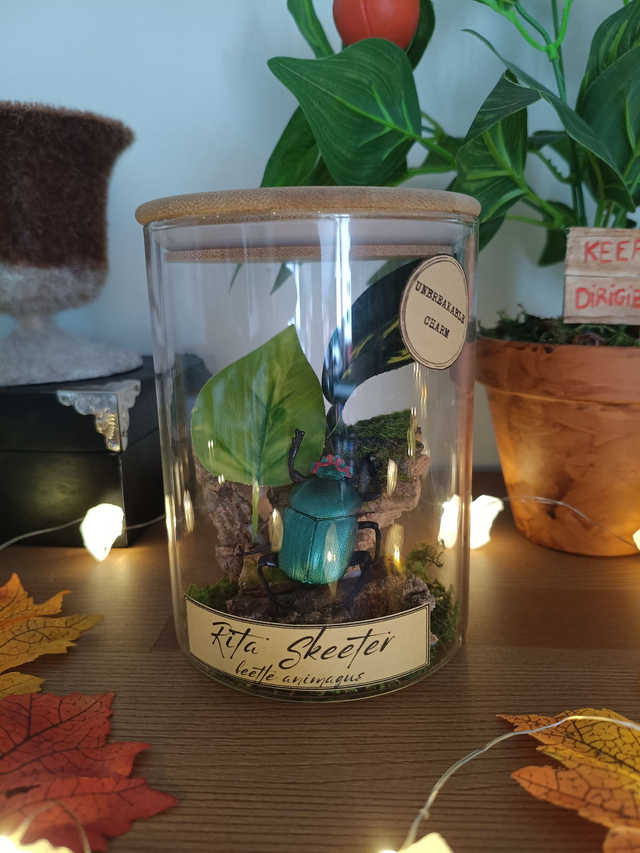 Retrouvez la journaliste travaillant pour la Gazette la plus connue du monde des sorciers sous sa forme d'animagus scarabée. Une jeune sorcière talentueuse l'y a enfermée dans un bocal scellé par un sortilège incassable. 🪲